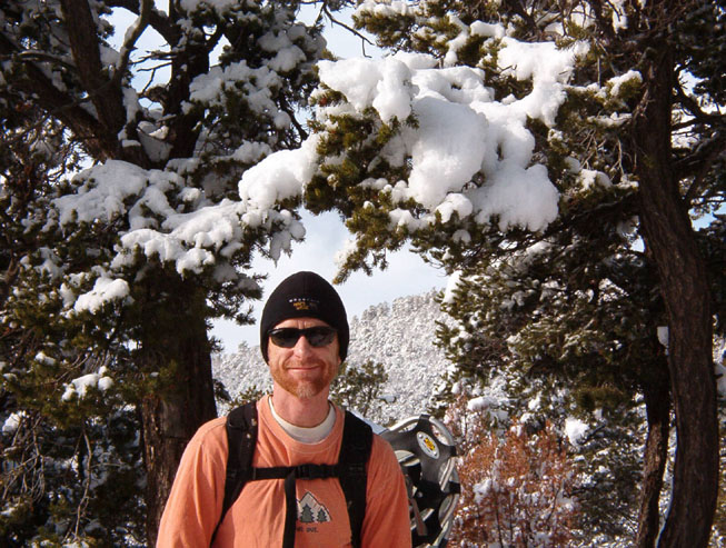 Not far past the crest we stumbled upon an area that had been trampled down. The trail past this area was not broken. It looked like we would be the first ones past this point since the major snow fell several days before. We put our snowshoes on, which was a first for Chris. We then continued on our way, getting to South Sandia Spring at about 11:00.