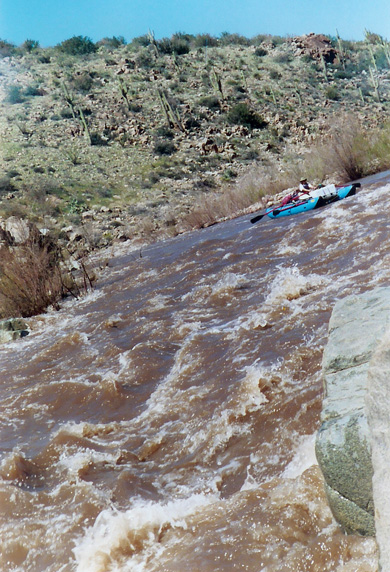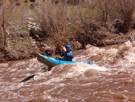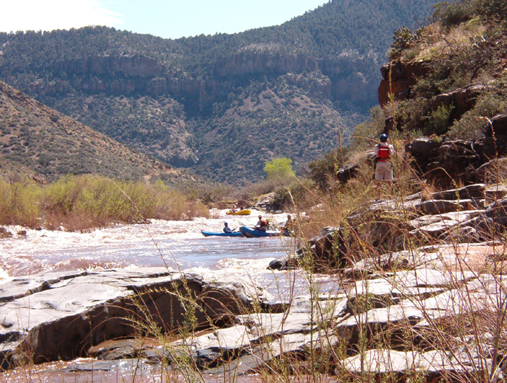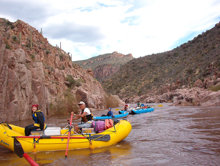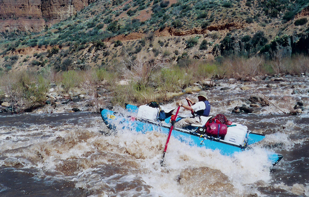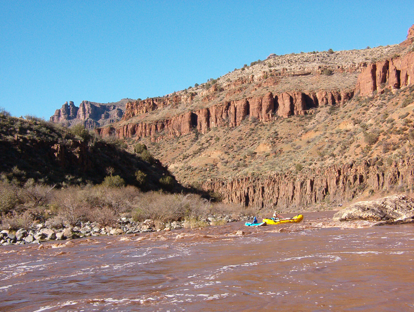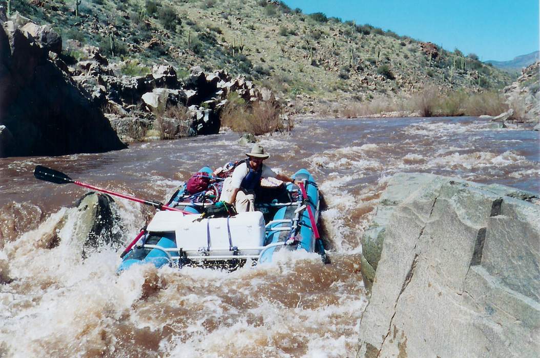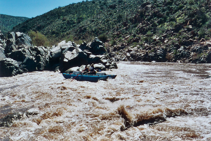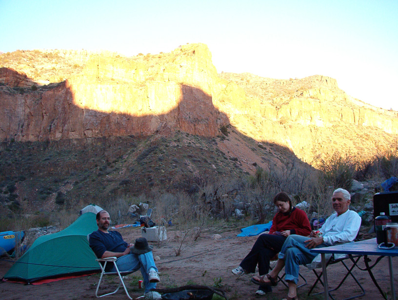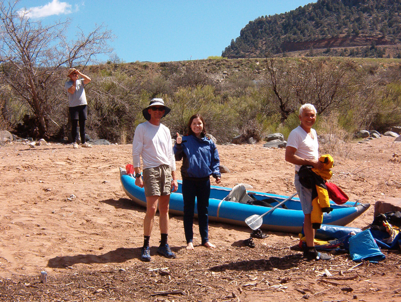 I left Albuquerque on Saturday, heading for the put-in where I met Chris, John, and . We ate dinner and started setting up the rafts there before hitting the hay. On Sunday the others ran the shuttle while I finished outfitting the raft. Larry and Greg arrived and got their rigging done. We were pretty much ready to take off when the shuttle drivers returned. By early afternoon we were floating under sunny skies.