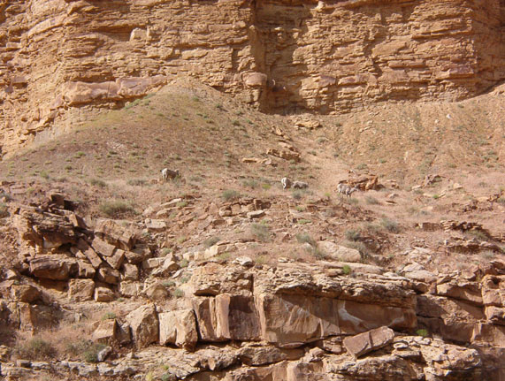 The next stretch of river was very slow. HUGE eddies on both sides of the river merged in the center, requiring some oaring to keep in the downstream-moving current. It was through this area that we spotted the some bighorn sheep above the river.