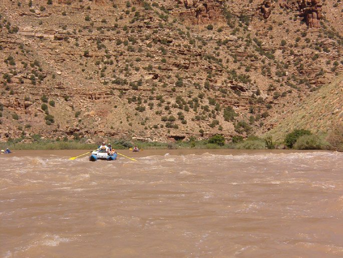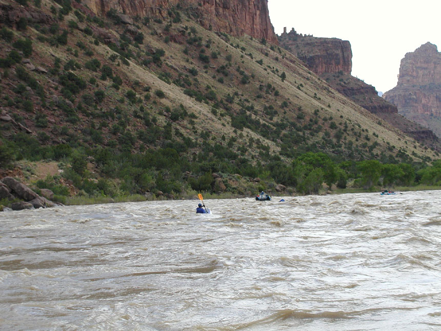 Rivers all around the Southwest were at flood stage. Just the other day a picture of a rafter flipping at Souse Hole on the Rio Grande appeared on the front page of the Albuquerque Journal. We were all excited, as flows were hitting 30,000 cfs on the Green. It would be the biggest water most of us had ever seen.