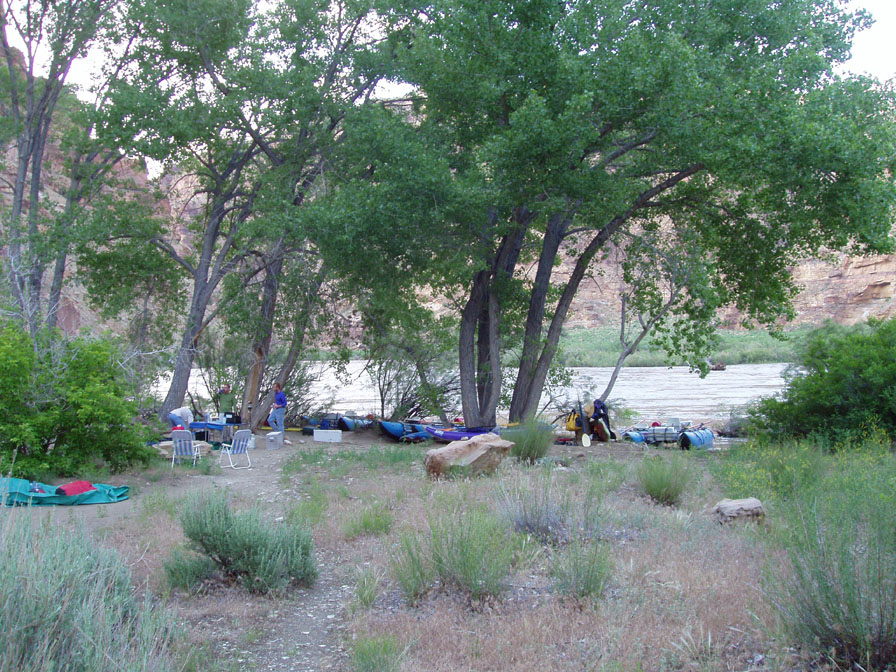 Poverty Camp was 23 miles from our last camp at Lion Hollow and we were truly glad it was available. It didn't look like much from the river, but it was pretty decent really. We decided that since we had had such a big day and only had 13 miles left before the take-out at Swasey, we would stay over here two nights. Poverty Canyon looked like it would make for a decent day-hike and there was a great eddy on the left by camp that we could use to run laps through Poverty Rapid. Poverty Rapid was like most of the rapids, good waves without the need to maneuver much.