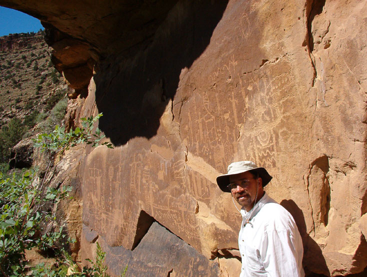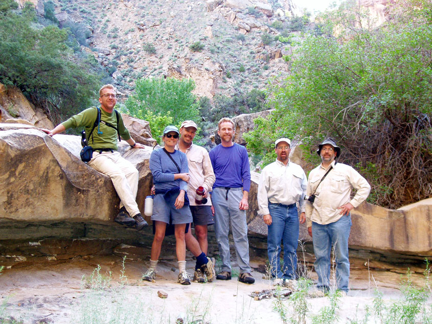 Day 3 presented many named rapids, most of which were small, and a great petroglyph stop. The petroglyphs are on the right at mile 63.3 and the pull-out is hard to spot. It has a steep bank, and we almost missed it by thinking we could see around the corner toward Flat Canyon from there (stop at the first likely opportunity past Big Tree). This is one of the better panels I've seen, and it is accessible very near the river. It was an exciting stop for Curt, who'd never seen petroglyphs before.