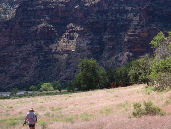 The next morning Chris and I hiked around a bit. There was a wierd old low-standing ranch building and a couple other structures near the put-in. Then we took off, commenting that the Green was so wide it looked like the Ohio!