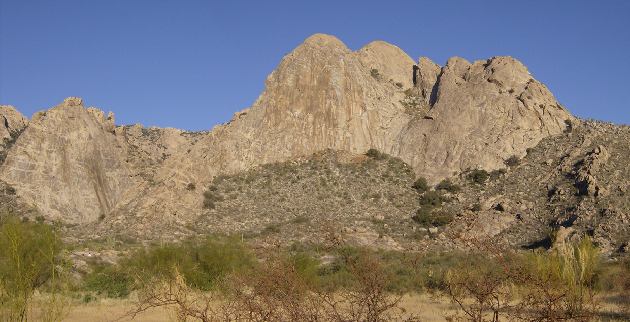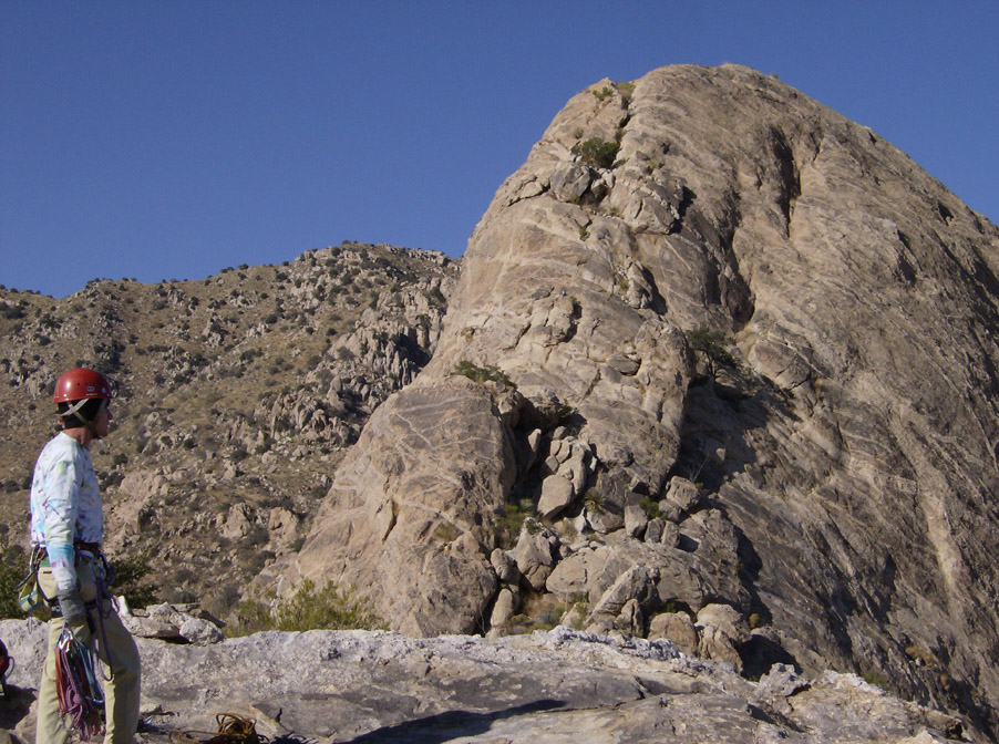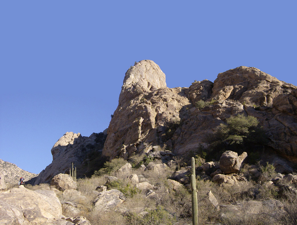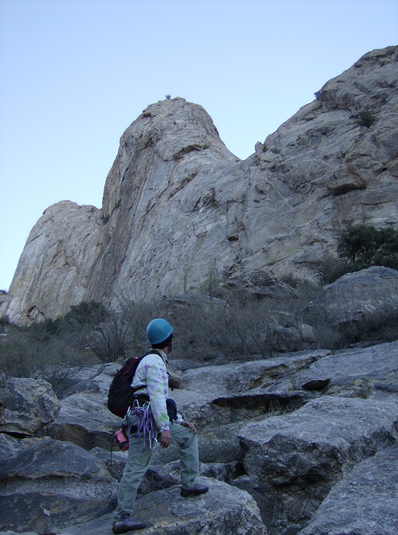 Last December when we tried to climb Elephant Dome it was the day after we'd climbed Finger Rock - in the Santa Catalinas - and we were totally fried (long story about forgetting lunch, etc). We hiked back into Mendoza Canyon but knew were not in any shape to climb.