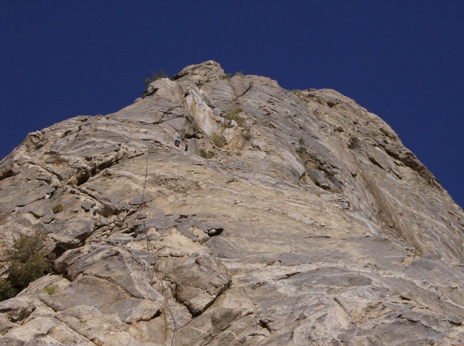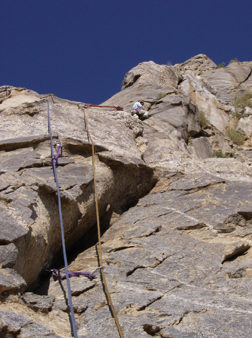 I led the fifth pitch and Chris led the sixth. We again simul-climed some on the sixth pitch so Chris could reach the summit without having to establish a new belay station.